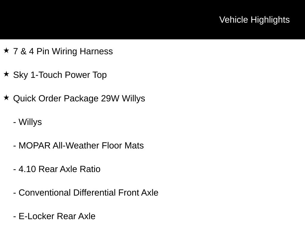 Comfort and convenience are at the forefront, with features like the Heated Front Seats, Heated Steering Wheel, and Power Top Quarter Window Storage Bag. The Removable Rear Quarter Windows and Rear Window Wiper/Washer further enhance your open-air driving experience.