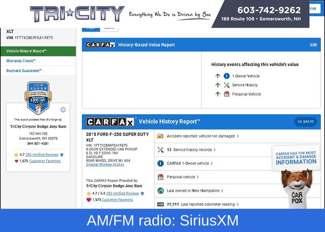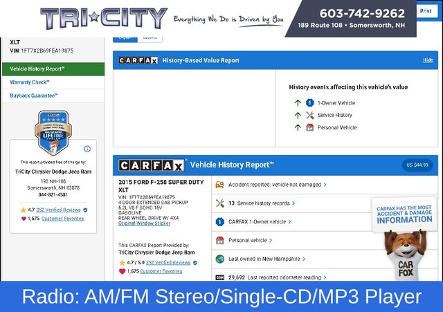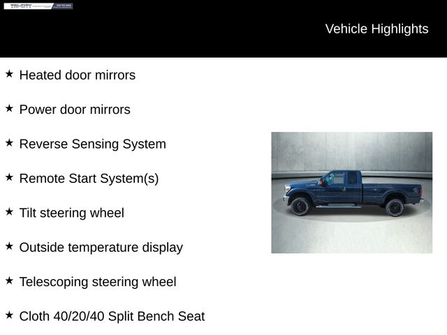 Discover the power and versatility of the 2015 Ford F-250SD XLT, a true workhorse built to handle any task with ease. This rugged pickup is equipped with a robust 6.2L V8 EFI SOHC 16V Flex Fuel engine, paired with a TorqShift 6-Speed Automatic transmission and 4-wheel drive, ensuring exceptional performance and capability.Highlighted features include:• XLT VALUE PACKAGE with 6-Way Power Driver's Seat, SecuriCode Keyless Entry Keypad, Adjustable Pedals, Reverse Sensing System, and more• STEEL, CLOTH 40/CONSOLE/40 FRONT SEATS• 5" CHROME TUBULAR STEP BARS• POWER SLIDING REAR WINDOW W/PRIVACY GLASS/DEFROST• REMOTE START SYSTEM(S)• CAMPER PACKAGE and SNOW PLOW PREP PACKAGEThis F-250SD XLT also boasts an impressive array of comfort and convenience features, such as AM/FM radio with SiriusXM, Air Conditioning, 6-Way Power Driver's Seat, Remote Keyless Entry, SYNC Voice Activated Communication & Entertainment, and much more.Designed to handle the toughest jobs, the 2015 Ford F-250SD XLT is the perfect companion for your work or recreational needs. With its rugged construction, advanced technology, and exceptional versatility, this truck is ready to take on any challenge you throw its way.Experience the power and capability of the 2015 Ford F-250SD XLT for yourself. Visit our showroom today and let our knowledgeable sales team demonstrate how this exceptional pickup can transform the way you work and play. We're confident you'll be impressed by its impressive performance and uncompromising quality. Don't miss out on the opportunity to make this truck your own.