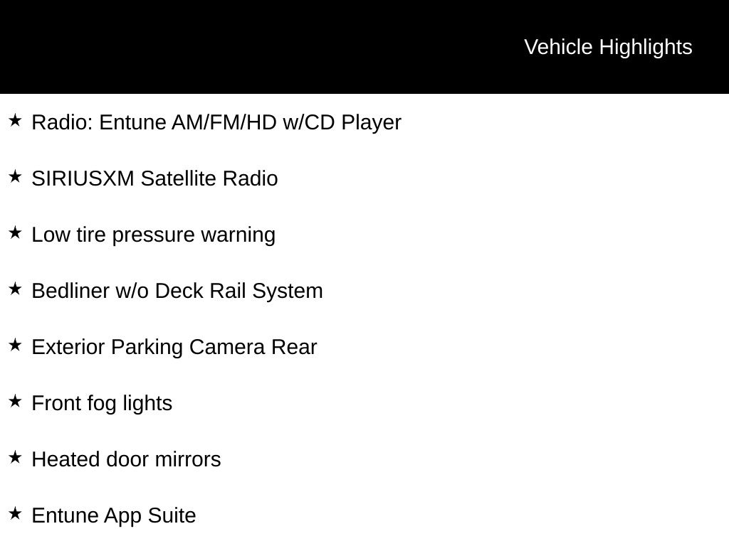 - Radio: Entune Audio Display AM/FM/HD with CD Player