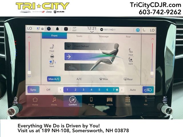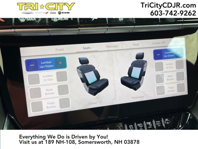 Step inside and be enveloped in a world of refined luxury. The premium leather-trimmed bucket seats, heated and ventilated for your comfort, provide a plush and supportive ride. The intuitive Uconnect 5 Nav system with a 12-inch display keeps you connected and entertained, while the Heads-Up Display and 360-degree camera system ensure you navigate with confidence.