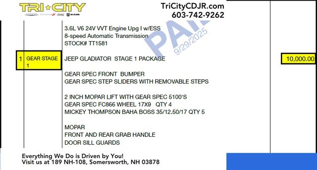 Experience the power, versatility, and premium features of the 2025 Jeep Gladiator Sport S. Visit our showroom today and let us demonstrate how this exceptional vehicle can elevate your driving experience. Price includes: $1000 - 2025 National Select Inventory Bonus Cash. Exp. 01/05/2026 $2000 - 2025 National Holiday Select Inventory Bonus Cash. Exp. 12/01/2025 $2250 - 2025 National Bonus Cash . Exp. 12/01/2025 Price includes dealer added accessories.