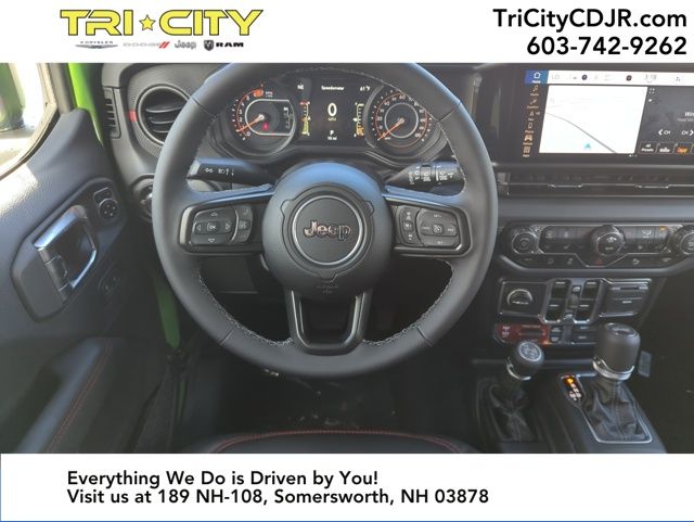 But the Rubicon X isn't just about raw power and capability. It's also packed with premium amenities that will keep you comfortable and connected on every journey. Enjoy the convenience of heated front seats, a heated steering wheel, and dual-zone automatic climate control. Stay entertained with the advanced Uconnect 5 infotainment system, featuring a stunning 12.3-inch touchscreen display, navigation, and seamless smartphone integration.