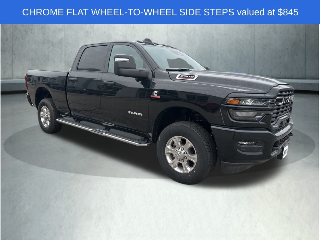 Diamond Black Crystal Pearlcoat 2025 Ram 2500 Big Horn 8-Speed Automatic 12" Touchscreen Display, 2 Way Rear Headrest Seat, 2nd Row In Floor Storage Bins, 4 Way Front Headrests, 40/20/40 Split Bench Seat, 4G LTE Wi-Fi Hot Spot, 9 Alpine Speakers w/Subwoofer, Air Conditioning ATC w/Dual Zone Control, Alexa Built-In, Anti-Spin Differential Rear Axle, Apple CarPlay, Auto Power-Folding Mirrors, Auto-Dimming Rear-View Mirror, Big Horn Level 1 Plus Equipment Group, Black Exterior Mirrors, Black Interior Accents, Blind Spot & Cross Path Detection, Body Color Grille Surround, Connected Travel & Traffic Services, Connectivity - US/Canada, CTR Stop Lamp w/Cargo View Camera, Dual Glove Boxes, Emergency Vehicle Alert System (EVAS), Exterior Mirrors Courtesy Lamps, Exterior Mirrors w/Heating Element, Exterior Mirrors w/Supplemental Signals, Foam Bottle Insert (Door Trim Panel), Folding Flat Load Floor Storage, Footwell Courtesy Lamp, Forward & Reverse Utility Lights, Front Armrest w/Cupholders, Front Center Seat Cushion Storage, Front Seat Back Map Pockets, Global Telematics Box Module (TBM), Glove Box Lamp, Google Android Auto, GPS Antenna Input, GPS Navigation, HD Radio, Heated Front Seats, Heated Seats & Wheel Group, Heated Steering Wheel, Integrated Voice Command w/Bluetooth, LED Bed Lighting, LED Tail Lamps, Locking Lower Glove Box, Luxury Steering Wheel, Manual Adjust 4-Way Front Passenger Seat, Mirror Running Lights, MOPAR Deployable Bed Step, MOPAR Spray In Bedliner, Off-Road Info Pages, Painted Front Bumper, Painted Rear Bumper, Power 2-Way Driver Lumbar Adjust, Power Adjust 8-Way Driver Seat, Power Adjust Mirrors, Power Adjustable Convex Aux Mirrors, Power Heated Folding Telescopic Mirrors, Power Telescoping Mirrors, Premium Cloth 40/20/40 Bench Seat, Radio: Uconnect 5 Nav w/12.0" Display, Rear 60/40 Folding Seat, Rear Dome w/On/Off Switch Lamp, Red Tail Lamp Bezels, Remote Start System, Remote USB Port - Charge Only, Selectable Tire Fill Alert, SiriusXM Radio Service, SiriusXM w/360L, Sport Appearance Package, Sport Decal, Steering Wheel Mounted Audio Controls, Storage Tray, Surround View Camera System, Towing Technology Group, Trailer Reverse Guidance, Trailer Tire Pressure Monitoring System, Trailer Tow Pages. Price includes: $2000 - 2025 National Bonus Cash . Exp. 11/03/2025 $2000 - 2025 National Overaged Select Inventory Bonus Cash. Exp. 11/03/2025 $3000 - 2025 Northeast BC Regional Retail Bonus Cash. Exp. 11/03/2025