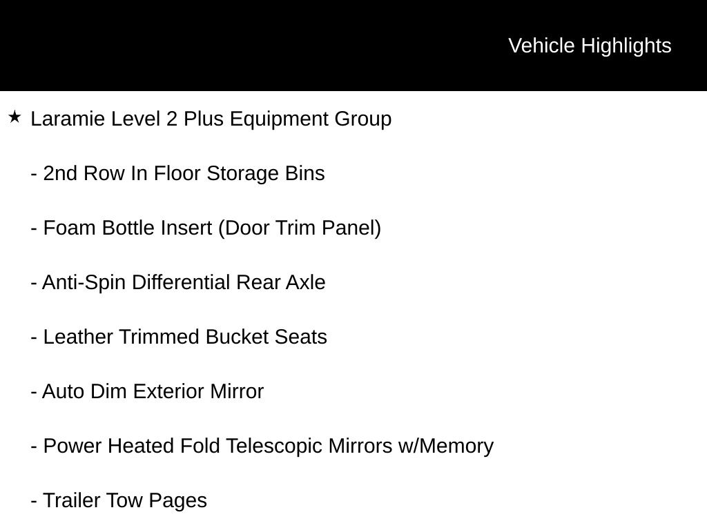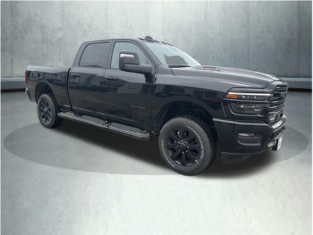 Diamond Black Crystal Pearlcoat 2025 Ram 2500 Laramie 8-Speed Automatic #1 Seat Foam Cushion, 115V Auxiliary Rear Power Outlet, 14.4" Touchscreen Display, 17 Speaker harman/kardon Premium Sound, 2 Way Rear Headrest Seat, 2nd Row In Floor Storage Bins, 3.73 Axle Ratio, 4 Way Front Headrests, 4G LTE Wi-Fi Hot Spot, Active Lane Management System, Adaptive Steering System, Alexa Built-In, Anti-Spin Differential Rear Axle, Apple CarPlay, Auto Adjust In Reverse Exterior Mirrors, Auto Dim Exterior Mirror, Auto High Beam Headlamp Control, Auto Power-Folding Mirrors, Auto-Dimming Exterior Passenger Mirror, Black Exterior Mirrors, Black Exterior Truck Badging, Black Wheel Center Hub, Body Color Grille Surround, Bucket Seats, Chrome Exterior Mirrors, Connected Travel & Traffic Services, Connectivity - US/Canada, CTR Stop Lamp w/Cargo View Camera, Disassociated Touchscreen Display, Drowsy Driver Detection, Dual Wireless Charging Pad, Electronic Stability Control, Emergency Vehicle Alert System (EVAS), Exterior Mirrors Courtesy Lamps, Exterior Mirrors w/Heating Element, Exterior Mirrors w/Memory, Exterior Mirrors w/Supplemental Signals, Foam Bottle Insert (Door Trim Panel), Folding Flat Load Floor Storage, Forward & Reverse Utility Lights, Front Seat Back Map Pockets, Full Length Upgraded Floor Console, Global Telematics Box Module (TBM), Gloss Black Grille Billets/Accents, Google Android Auto, GPS Antenna Input, GPS Navigation, HD Radio, Heated Front Seats, Heated Steering Wheel, High Back Seats, Integrated Voice Command w/Bluetooth, Laramie Level 2 Plus Equipment Group, Leather Trimmed Bucket Seats, LED Bed Lighting, Mirror Running Lights, MOPAR Deployable Bed Step, MOPAR Spray In Bedliner, Night Edition, Off-Road Info Pages, ParkView Rear Back-Up Camera, Power 2-Way Driver Lumbar Adjust, Power 2-Way Passenger Lumbar Adjust, Power Adjust 8-Way Driver Seat, Power Adjust 8-Way Front Passenger Seat, Power Adjust Mirrors, Power Adjustable Convex Aux Mirrors, Power Adjustable Pedals w/Memory, Power Deployable Running Boards, Power Heated Fold Telescopic Mirrors w/Memory, Power Sunroof, Power Telescoping Mirrors, Radio: Uconnect 5 Nav w/14.4" Display, Rain Sensitive Windshield Wipers, Rear 60/40 Folding Seat, Remote Tailgate Release, Selectable Tire Fill Alert, SiriusXM Radio Service, SiriusXM w/360L, Sport Performance Hood, Traffic Sign Recognition, Trailer Tow Pages, Wheels: 20" x 8.0" Black Painted Aluminum. Price includes: $2000 - 2025 National Bonus Cash . Exp. 11/03/2025 $3000 - 2025 Northeast BC Regional Retail Bonus Cash. Exp. 11/03/2025