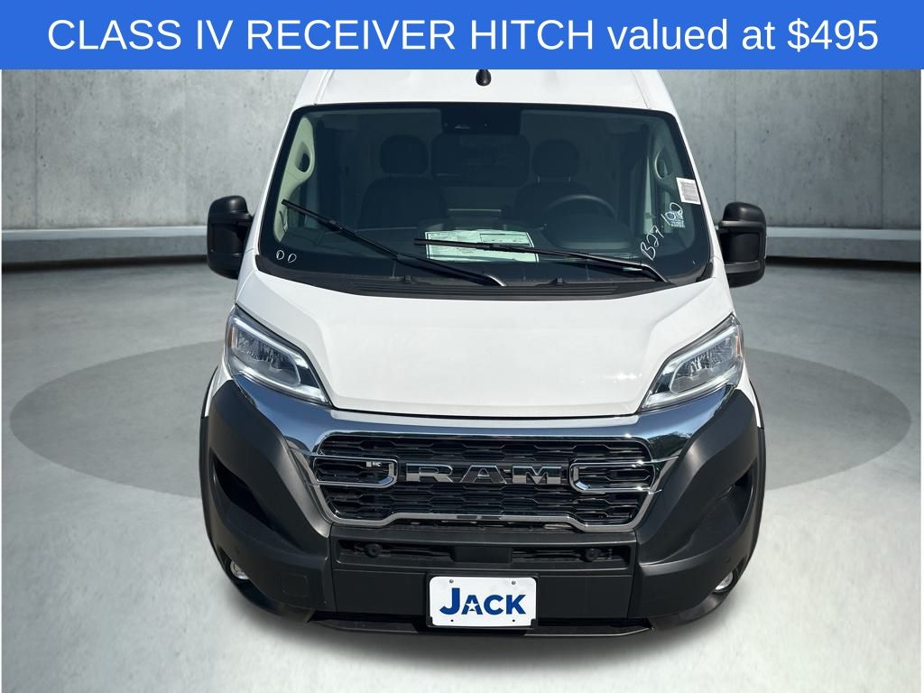 Bright White Clearcoat 2025 Ram ProMaster 3500 High Roof 9-Speed 948TE Automatic 10.1" Touchscreen Display, 100 Amp Battery, 115V Auxiliary Power Outlet, 12V Rear Auxiliary Power Outlet, 220 Amp Alternator, 4-Way Manual Adjust Front Passenger Seat, 4G LTE Wi-Fi Hotspot, Adaptive Cruise Control w/Stop & Go, Ambient LED Interior Lighting, Apple CarPlay, Auto High Beam Headlamp Control, Automatic Headlamps, Blind Spot & Cross Path Detection, Chrome Front Grille, Cluster 7.0" TFT Color Display, Connected Travel & Traffic Services, Connectivity - US/Canada, Cowl Aesthetic Cover, Digital Rearview Mirror w/Autodim, Disassociated Touchscreen Display, Exterior Mirrors w/Heating Element, Exterior Mirrors w/Supplemental Signals, For Details, Visit DriveUconnect.com, For More Info, Call 800-643-2112, Front LED Fog Lamps, Global Telematics Box Module (TBM), Google Android Auto, GPS Antenna Input, GPS Navigation, HD Radio, Heavy Duty Suspension, Instrument Panel Bright Bezels, Integrated Center Stack Radio, Integrated Voice Command w/Bluetooth, Intelligent Speed Assist (ISA), Lane Departure Warning Plus, LED Daytime Running Headlamps, LED Reflector Headlamps, ParkSense Front/Rear Park Assist System, ParkSense Rear Park Assist System, Passenger Bucket Seat, Passive Entry, Power Adjust Mirrors, Power Folding/Heated Mirrors, Power-Adjustable Convex Aux Mirrors, Premium Convenience Group, Quick Order Package 22G SLT, Radio: Uconnect 5 Nav w/10.1" Display, Rain Sensitive Windshield Wipers, Rear Cargo LED Lamp, Rear Heater - A/C Prep Package, Remote Start System, Safety Group, Security Alarm, Side Wall Paneling Lower, SiriusXM Radio Service, SiriusXM w/360L, Traction control, Traffic Sign Information, Wheels: 16" x 6.0" Aluminum Painted Silver, Wireless Charging Pad. Price includes: $2500 - 2025 National Bonus Cash . Exp. 01/05/2026