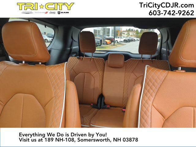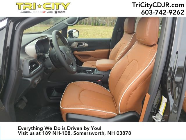Step inside this Pacifica Pinnacle and experience true luxury. The premium leather-trimmed bucket seats with heating, ventilation, and lumbar support provide unparalleled comfort, while the Sepia Seat Color and Heated Steering Wheel add an elegant touch. The Reclining 3rd-row seat and Trailer Tow Group make this SUV exceptionally versatile, accommodating your family's needs and your outdoor adventures.