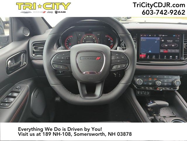 Step inside and be captivated by the Durango's luxurious interior, featuring premium Leather Trimmed Bucket Seats, Ventilated Front Seats, and a Heated Steering Wheel. The advanced technology, including Apple CarPlay/Android Auto and Wireless Charging Pad, seamlessly integrates your digital life with your driving experience.