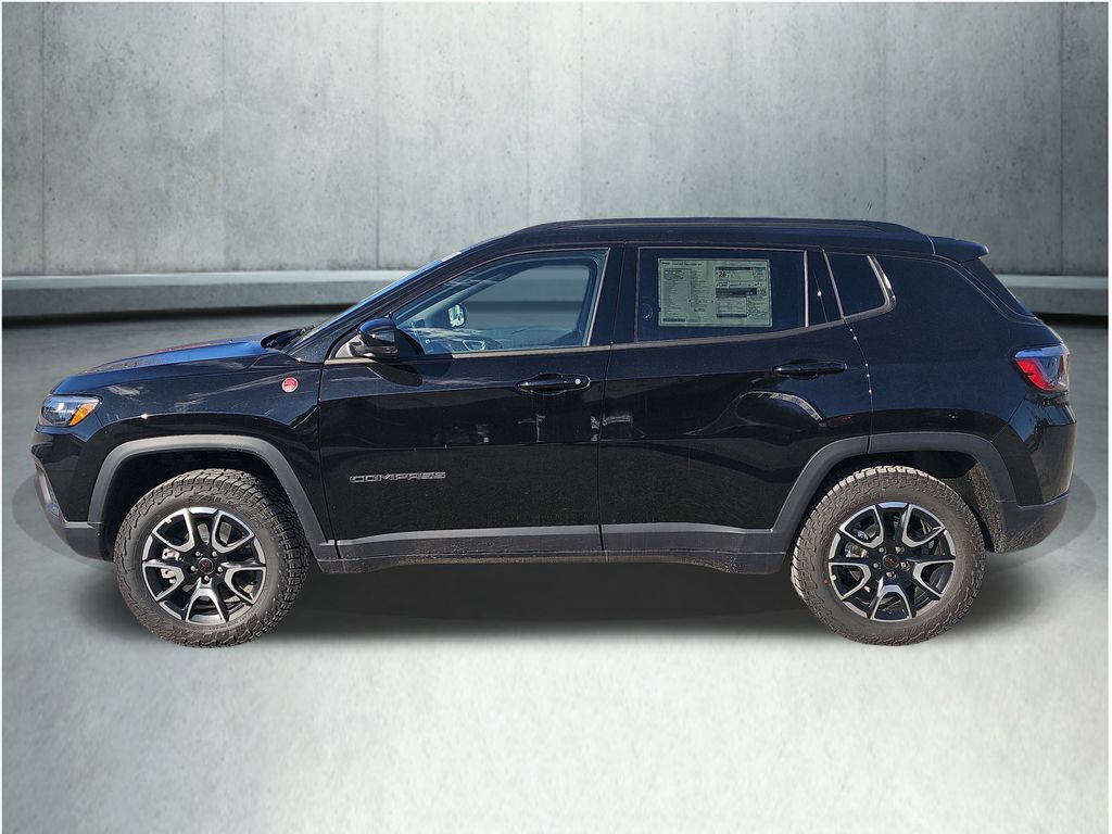 Diamond Black Crystal Pearlcoat 2026 Jeep Compass Trailhawk 8-Speed Automatic 4WD, 10.1" Touchscreen Display, 4 Pin Wiring Harness, Alexa Built-In, Automatic temperature control, Class III Receiver Hitch, Cluster 10.25" TFT Color Display, Connected Travel & Traffic Services, Electronic Stability Control, Front fog lights, GPS Navigation, HD Radio, Heated front seats, Integrated Voice Command w/Bluetooth, ParkView Rear Back-Up Camera, Power Front/Fixed Rear Full Sunroof, Power Liftgate, Premium Alpine Speaker System, SiriusXM w/360L, Sun, Sound & Nav Group, Traction control, Trailer Tow Group, Wheels: 17" x 6.5" Painted Black Aluminum. 23/31 City/Highway MPG Price includes: $1000 - 2026 National Retail Bonus Cash . Exp. 02/02/2026