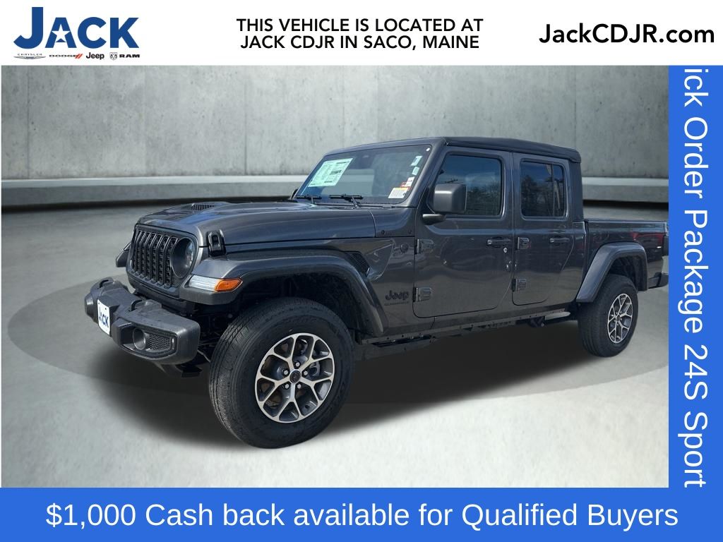 Granite Crystal Metallic Clearcoat 2026 Jeep Gladiator Sport S 8-Speed Automatic 12.3" Touchscreen Display, 2-Piece Body Color Fender Flares, Advanced Brake Assist, Air Conditioning with Auto Temp Control, Apple CarPlay/Android Auto, Auto High Beam Headlamp Control, Automatic Headlamps, Blind Spot and Cross Path Detection, Cluster 7.0" TFT Color Display, Convenience Group, Corning Gorilla Glass, Dark Sky Appearance Package, Daytime Running Lamp System, Daytime Running Lamps LED Accents, Deep Tint Sunscreen Windows, Electronic Stability Control, Emergency/Assistance Call, Front Door Locks 2-Door Passive Entry, Front LED Fog Lamps, Full Speed Forward Collision Warning Plus, Heated Front Seats, Heated Steering Wheel, LED Headlamp and Fog Lamp Group, LED Premium Reflector Headlamps, LED Taillamps, Mold in Color Bumper with Gloss Black, Normal Duty Plus Suspension, ParkSense Rear Park Assist System, Performance Hood, Power Heated Mirrors, Premium Wrapped Steering Wheel, Quick Order Package 24S Sport S, Radio: Uconnect 5 with 12.3" Display, Remote Start System, Safety Group, Security Alarm, Sun Visors with Illuminated Vanity Mirrors, Universal Garage Door Opener, Wheels: 17" x 7.5" Gray. Price includes: $1000 - 2026 National Retail Bonus Cash . Exp. 03/31/2026