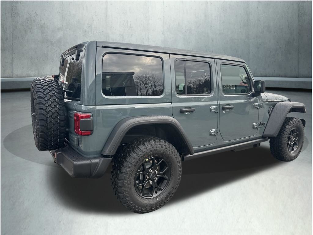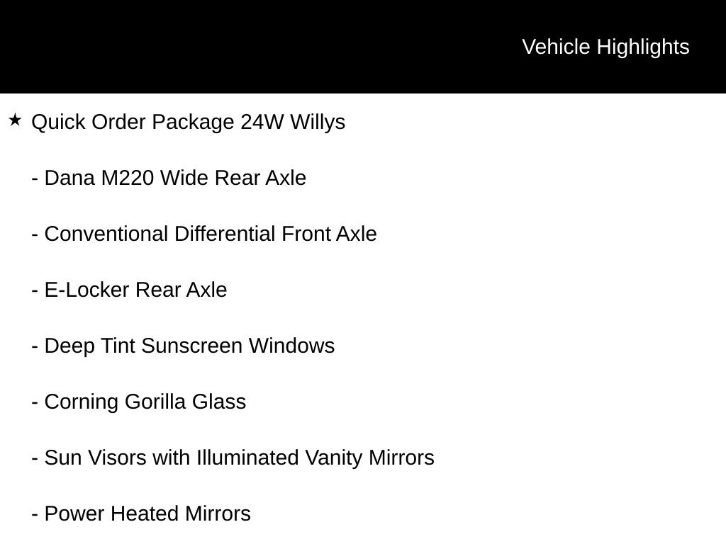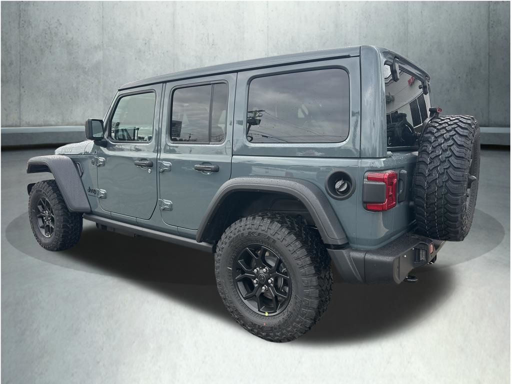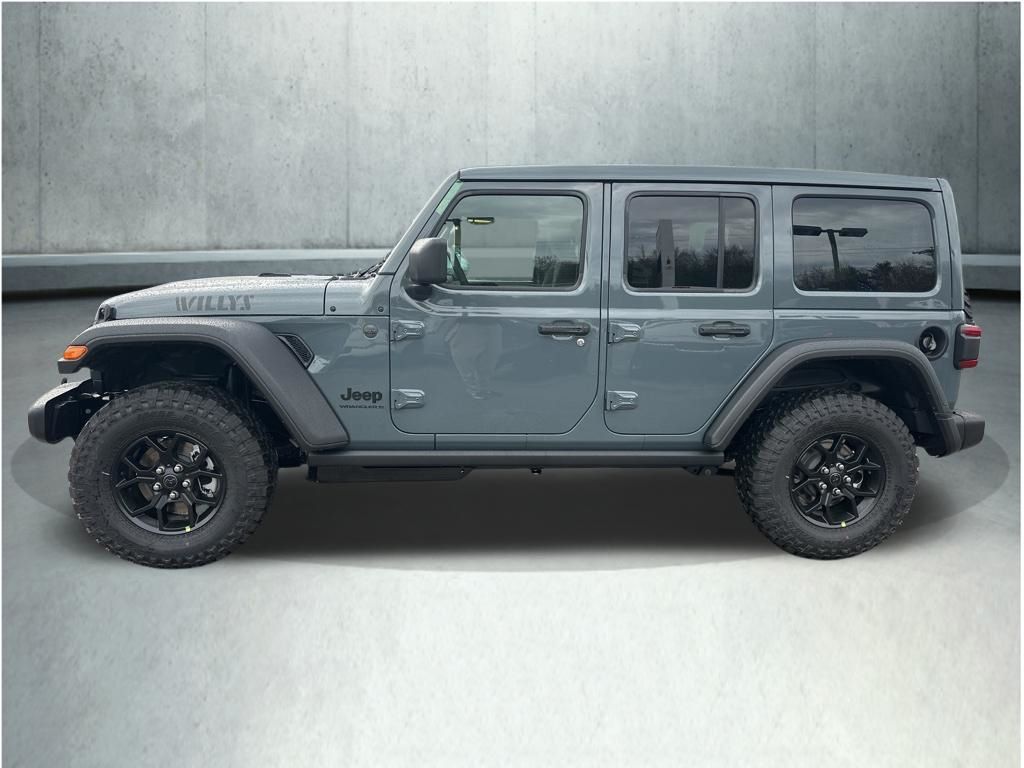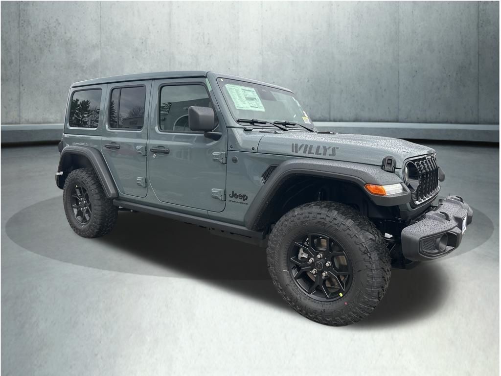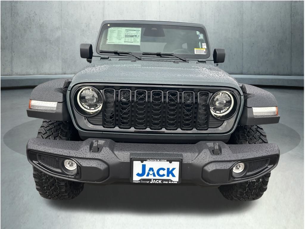 Anvil Clear Coat 2026 Jeep Wrangler Willys 8-Speed Automatic 2-Door Passive Entry, Front Door Locks, 4-Wheel Drive Swing Gate Decal, 4.10 Rear Axle Ratio, 7 and 4 Pin Wiring Harness, Advanced Brake Assist, Air Conditioning with Auto Temp Control, Air Filtering, Apple CarPlay/Android Auto, Auto High Beam Headlamp Control, Automatic Headlamps, Auxiliary Switches, Black Grille with Gloss Black Rings, Blind Spot and Cross Path Detection, Class II Receiver Hitch, Cluster 7.0" TFT Color Display, Convenience Group, Conventional Differential Front Axle, Corning Gorilla Glass, Dana M210 Wide HD Tube Front Axle, Dana M220 Wide Rear Axle, Daytime Running Lamps LED Accents, Deep Tint Sunscreen Windows, E-Locker Rear Axle, Electronic Stability Control, Emergency/Assistance Call, Enhanced Adaptive Cruise Control, Front fog lights, Front LED Fog Lamps, Full Speed Forward Collision Warning Plus, Heated Front Seats, Heated Steering Wheel, Increased Travel Export Tuned Suspension, Injection Molded Black Rear Bumper, LED Premium Reflector Headlamps, LED Taillamps, Mold in Color Bumper with Gloss Black, Molded in Color Rubicon Highline Flare, MOPAR All-Weather Floor Mats, Off-Road Plus Mode, ParkSense Rear Park Assist System, Power Heated Mirrors, Power Top Quarter Window Storage Bag, Premium Wrapped Steering Wheel, Quick Order Package 24W Willys, Radio: Uconnect 5 with 12.3" Display, Rear Window Defroster, Rear Window Wiper/Washer, Removable Rear Quarter Windows, Safety Group, Security Alarm, Sky One-Touch Power Top, Sun Visors with Illuminated Vanity Mirrors, Universal Garage Door Opener, Wheels: 17" x 7.5" Painted Black, Willys Hood Decal. Price includes: $1000 - 2026 National Retail Bonus Cash . Exp. 04/30/2026
