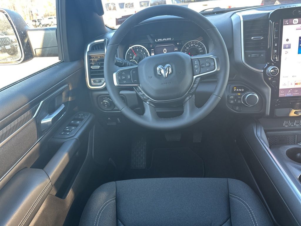Diamond Black Crystal Pearlcoat 2026 Ram 1500 Big Horn/Lone Star 8-Speed Automatic 115V Auxiliary Power Outlet, 115V Auxiliary Rear Power Outlet, 12" Touchscreen Display, 2nd Row in Floor Storage Bins, 3 Rear Seat Head Restraints, 4 Way Front Headrests, 400W Inverter, 4G LTE Wi-Fi Hot Spot, 9 Amplified Speakers with Subwoofer, Accent Color Door Handles, Accent Color Premium Power Mirrors, Accent Color Tailgate Handle, Air Conditioning ATC with Dual Zone Control, Anti-Spin Differential Rear Axle, Apple CarPlay, Auto Power-Folding Mirrors, Auto-Dimming Exterior Driver Mirror, Auto-Dimming Rear-View Mirror, Big Horn Level 2 Equipment Group, Black Exterior Mirrors, Black Exterior Truck Badging, Black Headlamp Bezels, Black Interior Accents, Black Painted Exterior Mirrors Caps, Black Premium Power Mirrors, Black Tail Lamp Bezels, Body Color Fender Flares, Body Color Front Bumper, Body Color Rear Bumper with Step Pads, Bucket Seats, Center Console Parts Module, Cluster 7.0" TFT Color Display, Configurable Drive Mode, Connected Travel and Traffic Services, Connectivity - US/Canada, Convex Wide-Angle Exterior Mirror Insert, Deluxe Cloth Bucket Seats, Disassociated Touchscreen Display, Dual Exhaust with Black Tips, Exterior Mirrors Courtesy Lamps, Exterior Mirrors with Heating Element, Exterior Mirrors with Supplemental Signals, Front Seat Back Map Pockets, Full Length Floor Console, Global Telematics Box Module, Glove Box Lamp, Google Android Auto, GPS Antenna Input, GPS Navigation, Grille Black Surround Black Mesh, HD Radio, Heated Front Seats, Heated Steering Wheel, Integrated Center Stack Radio, Integrated Voice Command with Bluetooth, Leather Wrapped Steering Wheel, LED Dome Lamp with on/Off Switch, LED Footwell Lighting, Manual Adjust 4-Way Front Passenger Seat, Media Hub with 2 Charge Only USBs, Mopar Black Tubular Side Steps, Night Edition, Overhead LED Lamps, ParkView Rear Back-Up Camera, Power 2-Way Driver Lumbar Adjust, Power Adjust 8-Way Driver Seat, Power Adjustable Pedals, Premium Overhead Console, Radio: Uconnect 5 Navigation with 12.0" Display, RAM Grille Badge - Black, Rear 60/40 Folding Seat, Rear Center Armrest, Rear Power Sliding Window, Rear Window Defroster, Remote Tailgate Release, Security Alarm, SiriusXM Radio Service, SiriusXM with 360L, Steering Wheel Mounted Audio Controls, Sun Visors with Illuminated Vanity Mirrors, Traction control, Universal Garage Door Opener, USB Host Flip, Wheels: 20" x 9.0" Aluminum Painted Clad, Wheels: 20" x 9" Aluminum Chrome Clad. Price includes: $3500 - 2026 National Retail Consumer Cash . Exp. 02/02/2026