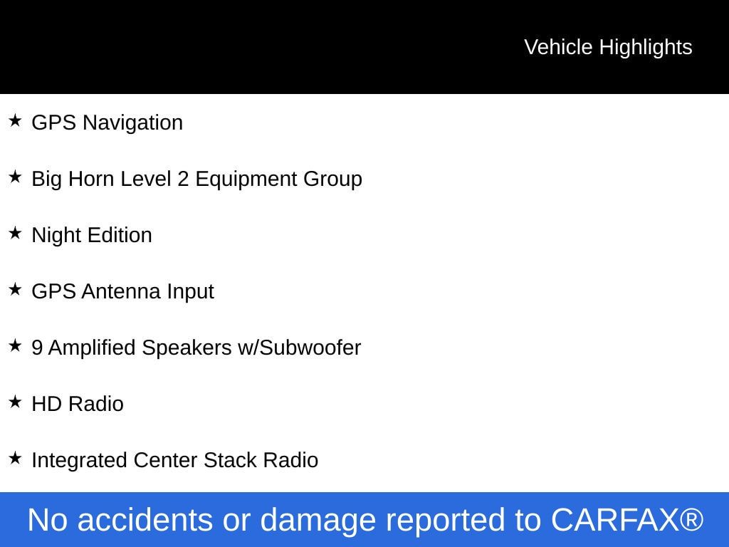 Forged Blue Metallic 2026 Ram 1500 Big Horn/Lone Star 8-Speed Automatic 115V Auxiliary Power Outlet, 115V Auxiliary Rear Power Outlet, 12" Touchscreen Display, 2nd Row In Floor Storage Bins, 3 Rear Seat Head Restraints, 4 Way Front Headrests, 400W Inverter, 4G LTE Wi-Fi Hot Spot, 9 Amplified Speakers w/Subwoofer, Accent Color Door Handles, Accent Color Premium Power Mirrors, Accent Color Tailgate Handle, Air Conditioning ATC w/Dual Zone Control, Anti-Spin Differential Rear Axle, Apple CarPlay, Auto Power-Folding Mirrors, Auto-Dimming Exterior Driver Mirror, Auto-Dimming Rear-View Mirror, Big Horn Level 2 Equipment Group, Black Exterior Mirrors, Black Exterior Truck Badging, Black Headlamp Bezels, Black Interior Accents, Black Painted Exterior Mirrors Caps, Black Premium Power Mirrors, Black Tail Lamp Bezels, Body Color Fender Flares, Body Color Front Bumper, Body Color Rear Bumper w/Step Pads, Bucket Seats, Center Console Parts Module, Cluster 7.0" TFT Color Display, Configurable Drive Mode, Connected Travel & Traffic Services, Connectivity - US/Canada, Convex Wide-Angle Exterior Mirror Insert, Deluxe Cloth Bucket Seats, Disassociated Touchscreen Display, Dual Exhaust w/Black Tips, Electronic Stability Control, Exterior Mirrors Courtesy Lamps, Exterior Mirrors w/Heating Element, Exterior Mirrors w/Supplemental Signals, Front Seat Back Map Pockets, Full Length Floor Console, Global Telematics Box Module (TBM), Glove Box Lamp, Google Android Auto, GPS Antenna Input, GPS Navigation, Grille Black Surround Black Mesh, HD Radio, Heated Front Seats, Heated Steering Wheel, Integrated Center Stack Radio, Integrated Voice Command w/Bluetooth, Leather Wrapped Steering Wheel, LED Dome Lamp w/On/Off Switch, LED Footwell Lighting, Manual Adjust 4-Way Front Passenger Seat, Media Hub w/2 Charge Only USBs, Mopar Black Tubular Side Steps, Night Edition, Overhead LED Lamps, ParkView Rear Back-Up Camera, Power 2-Way Driver Lumbar Adjust, Power Adjust 8-Way Driver Seat, Power Adjustable Pedals, Premium Overhead Console, Radio: Uconnect 5 Nav w/12.0" Display, RAM Grille Badge - Black, Rear 60/40 Folding Seat, Rear Center Armrest, Rear Power Sliding Window, Rear Window Defroster, Remote Tailgate Release, Secondary Active Grille Shutters, Security Alarm, SiriusXM Radio Service, SiriusXM w/360L, Steering Wheel Mounted Audio Controls, Sun Visors w/Illuminated Vanity Mirrors, Universal Garage Door Opener, USB Host Flip, Wheels: 20" x 9.0" Aluminum Painted Clad, Wheels: 20" x 9" Aluminum Chrome Clad (WRK), Wireless Charging Pad. Price includes: $3500 - 2026 National Retail Consumer Cash . Exp. 02/02/2026