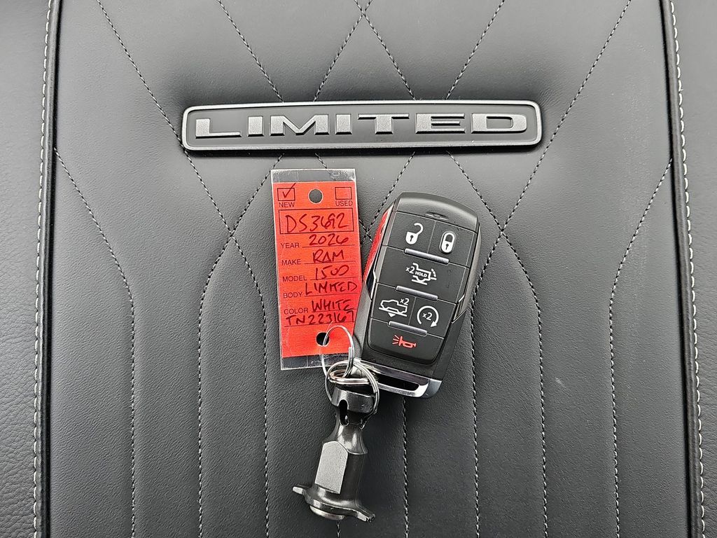 Ivory White Tri-Coat Pearlcoat 2026 Ram 1500 Limited 8-Speed Automatic 12-Way/1-Way Trailer Connector, 14.4" Touchscreen Display, 240 Amp Alternator, 3.92 Rear Axle Ratio, 4G LTE Wi-Fi Hot Spot, Accent Color Door Handles, Accent Color Premium Power Mirrors, Accent Color Tailgate Handle, Apple CarPlay, Auto Power-Folding Mirrors, Auto-Dimming Exterior Driver Mirror, Automatic temperature control, Black Day Light Opening Moldings, Black Exterior Truck Badging, Black Grille Surround Texture 7 Black, Black Headlamp Bezels, Black Painted Exterior Mirrors Caps, Black Tail Lamp Bezels, Body Color Front Bumper, Body Color Rear Bumper w/Step Pads, Connected Travel & Traffic Services, Connectivity - US/Canada, Convex Wide-Angle Exterior Mirror Insert, Disassociated Touchscreen Display, Dome Dual LED Reading Lamp, Drowsy Driver Detection, Dual Exhaust w/Black Tips, Dual-Pane Panoramic Sunroof, Electronic Stability Control, Evasive Steer Assist, Exterior 115V AC Outlet, Exterior Mirrors Courtesy Lamps, Exterior Mirrors w/Heating Element, Exterior Mirrors w/Memory, Exterior Mirrors w/Supplemental Signals, Exterior Parking Camera Rear, Global Telematics Box Module (TBM), Google Android Auto, GPS Antenna Input, GPS Navigation, Hands-Free Active Driving Assist System, HD Radio, Heads-Up Display, Integrated Center Stack Radio, Integrated Voice Command w/Bluetooth, Intersection Collision Assist System, LED CHMSL Lamp, LED Dome/Reading Lamp, Limited Level A Equipment Group, Navigation System, Night Edition, Pirelli Brand Tires, Radio: Uconnect 5 Nav w/14.4" Display, RAM Grille Badge - Black, RamBox Cargo Management System, Rear window defroster, SiriusXM Radio Service, SiriusXM w/360L, Smartphone As A Key Capable, Sport Performance Hood, Surround View Camera System, Traffic Sign Recognition, Tri-Fold Tonneau Cover, USB Host Flip, Wheels: 22" x 9" Premium Black Aluminum. Price includes: $3500 - 2026 National Retail Consumer Cash . Exp. 02/02/2026