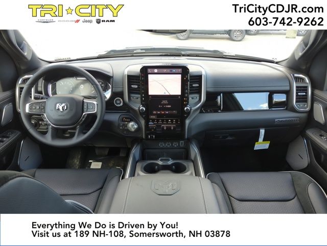 Step inside the cabin, and you'll be enveloped in a world of unparalleled luxury and technology. The Laramie Level 2 Equipment Group offers an array of premium amenities, including heated and ventilated front seats, heated rear seats, a heated steering wheel, and a 14.4" Uconnect 5 Nav touchscreen display with integrated navigation. The harman/kardon 19-speaker premium sound system delivers an immersive audio experience, while the SiriusXM with 360L provides endless entertainment options.