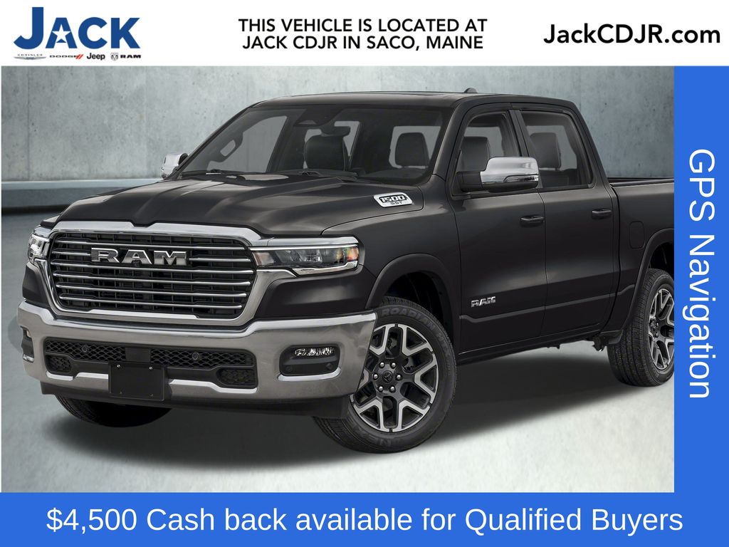 Diamond Black Crystal Pearlcoat 2026 Ram 1500 Laramie 8-Speed Automatic 12-Way/1-Way Trailer Connector, 14.4" Touchscreen Display, 4G LTE Wi-Fi Hot Spot, Accent Color Door Handles, Accent Color Premium Power Mirrors, Accent Color Tailgate Handle, Active Driving Assist System, Advanced Safety Group II, Anti-Spin Differential Rear Axle, Auto Power-Folding Mirrors, Auto-Dimming Exterior Driver Mirror, Bed Utility Group, Black Exterior Truck Badging, Black Headlamp Bezels, Black Interior Accents, Black Painted Exterior Mirrors Caps, Black Tail Lamp Bezels, Body Color Front Bumper, Body Color Rear Bumper w/Step Pads, Cluster 12" TFT Color Display, Connected Travel & Traffic Services, Connectivity - US/Canada, Convex Wide-Angle Exterior Mirror Insert, Dome Dual LED Reading Lamp, Drowsy Driver Detection, Dual Exhaust w/Black Tips, Dual-Pane Panoramic Sunroof, Evasive Steer Assist, Exterior 115V AC Outlet, Exterior Mirrors Approach Lamps, Exterior Mirrors Courtesy Lamps, Exterior Mirrors w/Heating Element, Exterior Mirrors w/Memory, Exterior Mirrors w/Supplemental Signals, Front Passenger Interactive Display, GPS Navigation, Grille Surround 3 Black Texture 2 Black, harman/kardon 19 Speaker Premium Sound, Integrated Center Stack Radio, Integrated Voice Command w/Bluetooth, Intersection Collision Assist System, Laramie Level 2 Equipment Group, LED Dome/Reading Lamp, MOPAR 4 Adjustable Cargo Tie-Down Hooks, MOPAR Spray In Bedliner, Navigation System, Night Edition, ParkView Rear Back-Up Camera, Pirelli Brand Tires, Power Tailgate, Proximity Approach/Departure Lamps, Radio: Uconnect 5 Nav w/14.4" Display, Rain Sensitive Windshield Wipers, RAM Grille Badge - Black, SiriusXM Radio Service, SiriusXM w/360L, Sport Performance Hood, Surround View Camera System, Traffic Sign Recognition, Trailer Brake Control, Trailer Reverse Steering Control, Trailer Tire Pressure Monitoring System, Trailer Tow Group (DISC), USB Host Flip, Wheels: 22" x 9" Forged Aluminum. Price includes: $3500 - 2026 National Retail Consumer Cash . Exp. 01/05/2026