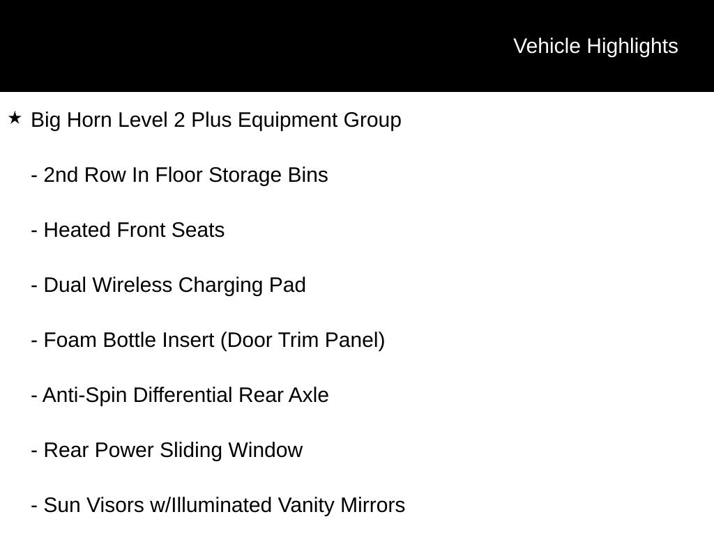 Pxj 2026 Ram 2500 Big Horn 8-Speed Automatic 115V Auxiliary Front Power Outlet, 115V Auxiliary Rear Power Outlet, 12" Touchscreen Display, 2 Way Rear Headrest Seat, 2nd Row In Floor Storage Bins, 4 Way Front Headrests, 400W Inverter, 4G LTE Wi-Fi Hot Spot, 9 Alpine Speakers w/Subwoofer, Active Lane Management System, Adaptive Steering System, Air Conditioning ATC w/Dual Zone Control, Alexa Built-In, Anti-Spin Differential Rear Axle, Apple CarPlay, Auto High Beam Headlamp Control, Auto Power-Folding Mirrors, Auto-Dimming Rear-View Mirror, Big Horn Level 2 Plus Equipment Group, Black Exterior Mirrors, Black Exterior Truck Badging, Black Interior Accents, Black Wheel Center Hub, Blind Spot & Cross Path Detection, Body Color Grille-Surround, Bucket Seats, Cluster 7.0" TFT Color Display, Connected Travel & Traffic Services, Connectivity - US/Canada, CTR Stop Lamp w/Cargo View Camera, Dampened Tailgate, Disassociated Touchscreen Display, Drowsy Driver Detection, Dual Glove Boxes, Dual Wireless Charging Pad, Emergency Vehicle Alert System (EVAS), Exterior 115V AC Outlet, Exterior Mirrors Courtesy Lamps, Exterior Mirrors w/Heating Element, Exterior Mirrors w/Supplemental Signals, Foam Bottle Insert (Door Trim Panel), Folding Flat Load Floor Storage, Footwell Courtesy Lamp, For Details, Visit DriveUconnect.com, For More Info, Call 800-643-2112, Forward & Reverse Utility Lights, Front Seat Back Map Pockets, Full Length Upgraded Floor Console, Global Telematics Box Module (TBM), Gloss Black Nostrils/Mic Black Grille, Glove Box Lamp, Google Android Auto, GPS Antenna Input, GPS Navigation, HD Radio, Heated Front Seats, Heated Steering Wheel, Integrated Voice Command w/Bluetooth, LED Bed Lighting, LED Tail Lamps, Locking Lower Glove Box, Luxury Steering Wheel, Manual Adjust 4-Way Front Passenger Seat, Media Hub w/2 Charge Only USBs, Mirror Running Lights, MOPAR Deployable Bed Step, MOPAR Spray In Bedliner, Night Edition, Off-Road Info Pages, Painted Front Bumper, Painted Rear Bumper, ParkView Rear Back-Up Camera, Power 2-Way Driver Lumbar Adjust, Power Adjust 8-Way Driver Seat, Power Adjust Mirrors, Power Adjustable Pedals, Power Heated Folding Telescopic Mirrors, Power Telescoping Mirrors, Power-Adjustable Convex Aux Mirrors, Premium Cloth Bucket Seats, Radio: Uconnect 5 Nav w/12.0" Display, Rain Sensitive Windshield Wipers, Rear 60/40 Folding Seat, Rear Dome w/On/Off Switch Lamp, Rear Power Sliding Window, Red Tail Lamp Bezels, Remote Start System, Selectable Tire Fill Alert, SiriusXM Radio Service, SiriusXM w/360L, Steering Wheel Mounted Audio Controls, Sun Visors w/Illuminated Vanity Mirrors, Surround View Camera System, Traffic Sign Recognition, Trailer Reverse Guidance, Trailer Tire Pressure Monitoring System, Trailer Tow Pages, Universal Garage Door Opener, Wheels: 20" x 8.0" Black Painted Aluminum. Price includes: $1000 - 2026 National Bonus Cash . Exp. 11/03/2025