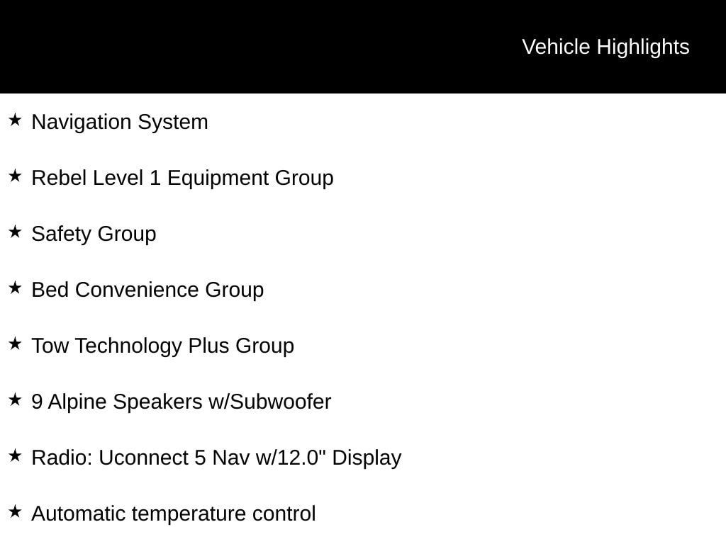 Molten Red Pearlcoat 2026 Ram 2500 Rebel 8-Speed Automatic 115V Auxiliary Rear Power Outlet, 2 Way Rear Headrest Seat, 4 Way Front Headrests, 9 Alpine Speakers w/Subwoofer, Active Lane Management System, Adaptive Steering System, Auto Adjust In Reverse Exterior Mirrors, Auto Dim Exterior Mirror, Auto High Beam Headlamp Control, Auto Power-Folding Mirrors, Auto-Dimming Exterior Passenger Mirror, Automatic temperature control, Auxiliary Switches Prep, Bed Convenience Group, Black Exterior Mirrors, Body Color Door Handles, Bucket Seats, Digital 3.0 Rear View Auto Dimming Mirror, Drowsy Driver Detection, Dual Wireless Charging Pad, Electronic Stability Control, Exterior Mirrors Courtesy Lamps, Exterior Mirrors w/Heating Element, Exterior Mirrors w/Memory, Exterior Mirrors w/Supplemental Signals, Folding Flat Load Floor Storage, Forward & Reverse Utility Lights, Front Door Locks 2-Door Passive Entry, Front fog lights, Front Seat Back Map Pockets, Full Length Upgraded Floor Console, Heated Front Seats, Heated Second Row Seats, Heated Steering Wheel, High Back Seats, Leather Trimmed Bucket Seats (PL), LED Bed Lighting, LED Dome Lamp w/On/Off Switch, LED Interior Lighting, Media Hub w/2 Charge Only USBs, Mirror Running Lights, MOPAR Front & Rear Rubber Floor Mats, MOPAR Spray In Bedliner, Navigation System, Overhead LED Lamps, ParkView Rear Back-Up Camera, Power 2-Way Driver Lumbar Adjust, Power 2-Way Passenger Lumbar Adjust, Power Adjust 8-Way Driver Seat, Power Adjust 8-Way Front Passenger Seat, Power Adjust Mirrors, Power Adjustable Pedals w/Memory, Power Heated Fold Telescopic Mirrors w/Memory, Power Telescoping Mirrors, Power-Adjustable Convex Aux Mirrors, Premium Overhead Console, Radio: Uconnect 5 Nav w/12.0" Display, Radio/Driver Seat/Mirrors/Pedals Memory, Rain Sensitive Windshield Wipers, Rear 60/40 Folding Seat, Rebel Level 1 Equipment Group, Safety Group, Sport Performance Hood, Sun Visors w/Illuminated Vanity Mirrors, Tow Technology Plus Group, Traffic Sign Recognition, Trailer Reverse Steering Control, Universal Garage Door Opener, Ventilated Front Seats. Price includes: $1000 - 2026 National Bonus Cash . Exp. 03/31/2026
