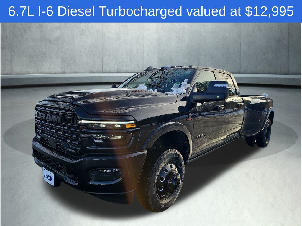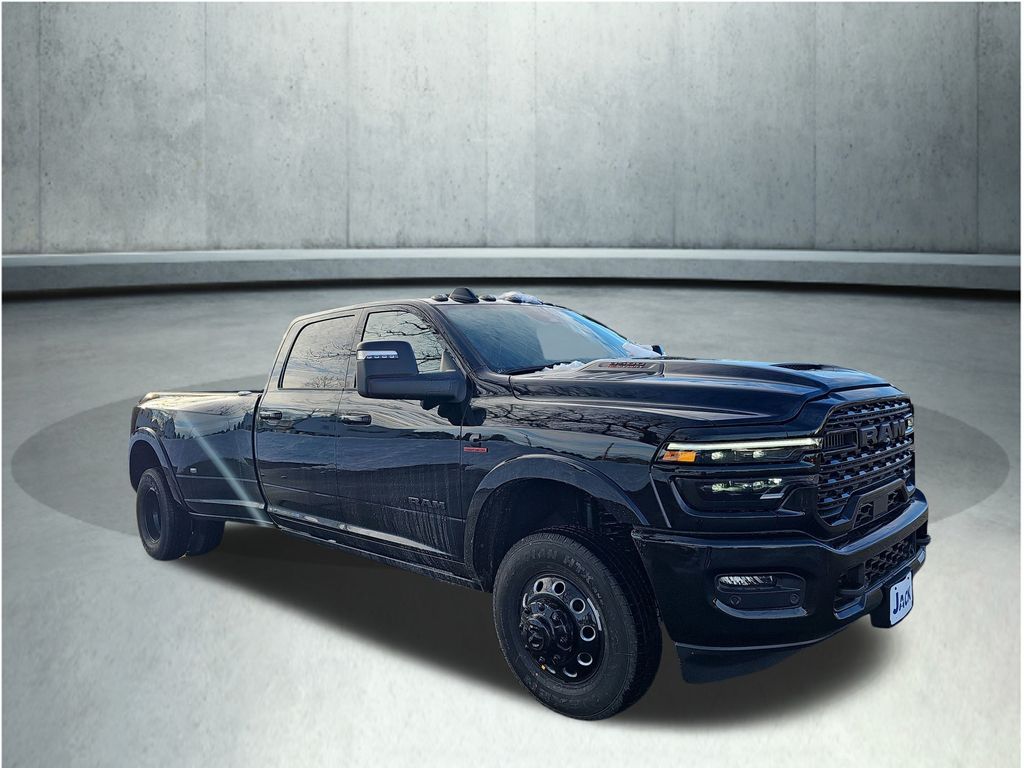 Diamond Black Crystal Pearlcoat 2026 Ram 3500 Limited 8-Speed Automatic 5th Wheel/Gooseneck Towing Prep Group, 6000# Front Axle w/Hub Ext, Active Lane Management System, Adaptive Steering System, Auto Level Rear Air Suspension, Black Exterior Truck Badging, Black Limited Grille, Black Wheel Center Hub, Body Color Grille Surround, Box & Rear Fender Clearance Lamps, Center Hub, Clearance Lamps, CTR Stop Lamp w/Cargo View Camera, Digital Rearview Mirror, Drowsy Driver Detection, Dual Rear Wheels, Electronic Stability Control, Front dual zone A/C, Front fog lights, harman/kardon® Speakers, LED Bed Lighting, Limited Level 1 Equipment Group, Max Tow Package, MOPAR Spray In Bedliner, MyFlexCare Service Diesel, Navigation System, Nexen Brand Tires, Night Edition, ParkView Rear Back-Up Camera, Power Deployable Running Boards, Power Sunroof, Radio: Uconnect 5 Nav w/14.4" Display, Security system, Sport Performance Hood, Surround View Camera System, Tow-Mode Camera (Wired), Tow-Mode Digital Rear View Mirror Package, Traffic Sign Recognition, Trailer Reverse Guidance, Trailer Tire Pressure Monitoring System, Wheels: 17" x 6.0" Polished Aluminum. Price includes: $1000 - 2026 National Bonus Cash . Exp. 12/01/2025