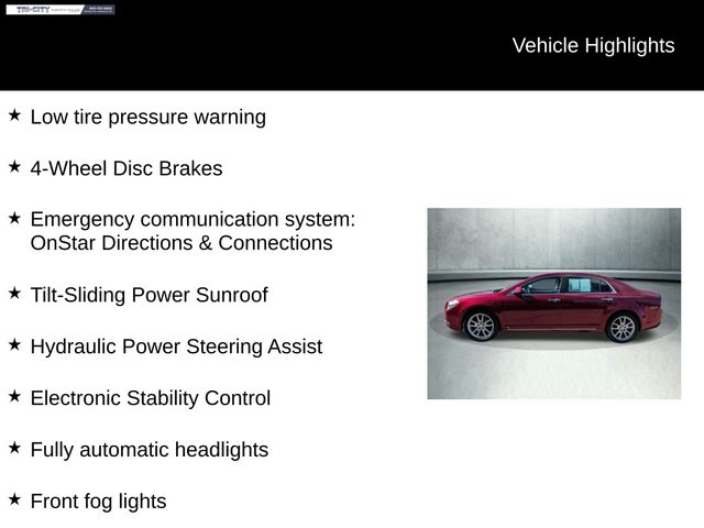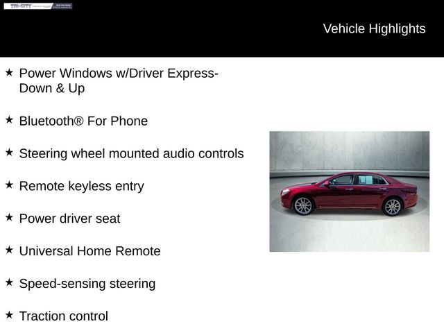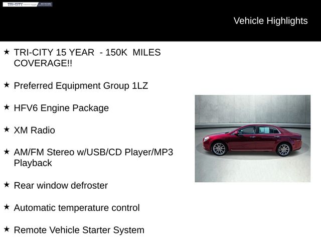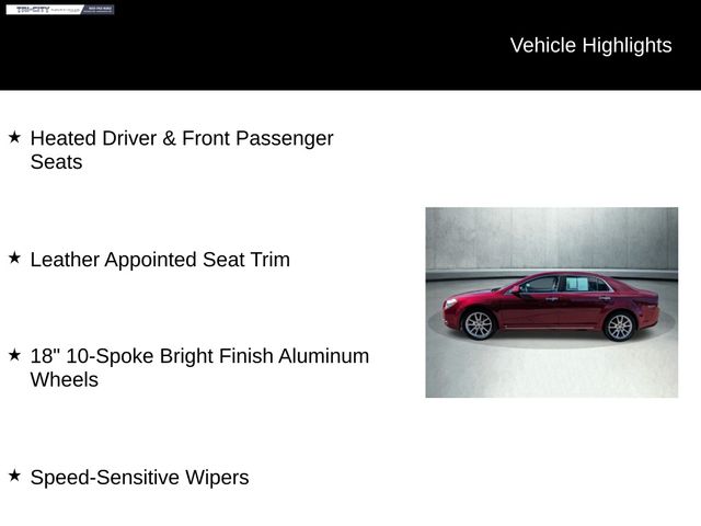 The Malibu LTZ's striking Red Jewel Tintcoat exterior is complemented by a spacious and well-appointed interior, offering a level of comfort and refinement that is sure to impress. With seating for up to five and a generous cargo area, this Malibu is the perfect companion for your daily commute or weekend adventures.