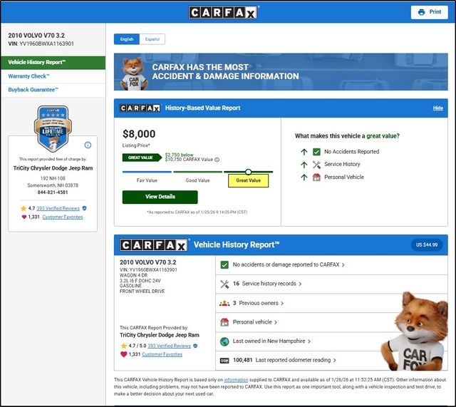 Used 2010 Volvo V70 3.2