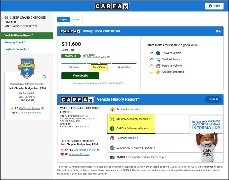 This exceptional 2011 Jeep Grand Cherokee Limited is a rare find, combining exceptional performance, uncompromising capability, and refined sophistication. Experience the difference for yourself and schedule a test drive today. We're confident you'll be impressed by this remarkable SUV.