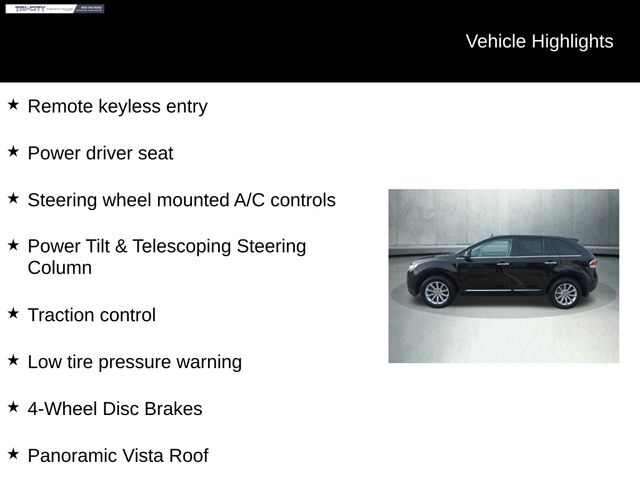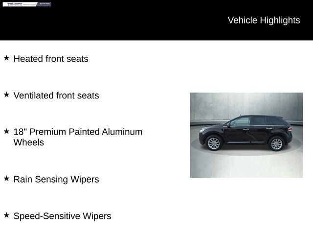 Boasting a fuel-efficient 17 city / 23 highway MPG, this Lincoln MKX offers impressive efficiency without sacrificing power. The 101A Premium Package adds a host of desirable features, including 18-inch polished aluminum wheels, rain-sensing wipers, and illuminated front scuff plates.