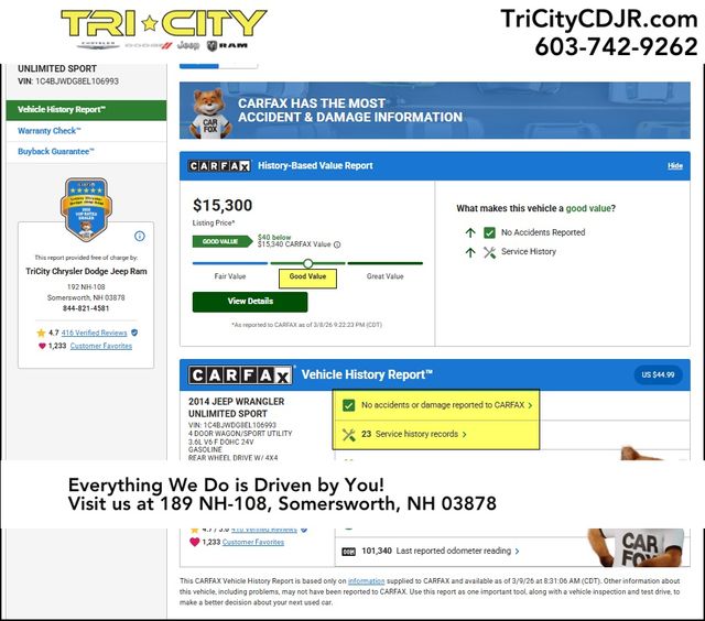 Whether you're conquering the trails or cruising the city streets, this 2014 Jeep Wrangler Unlimited Sport is ready to deliver an unparalleled driving experience. With its impressive towing capacity, premium features, and iconic Jeep styling, this versatile SUV is the perfect companion for your next adventure. Schedule a test drive today and discover the freedom and capability that only a Wrangler can provide.