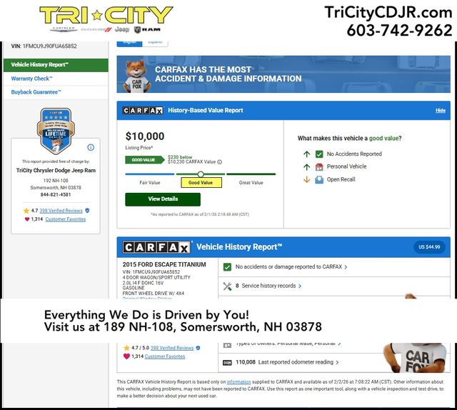 This exceptional 2015 Ford Escape Titanium is priced at just $9,736, making it an exceptional value in the pre-owned market. Don't miss the opportunity to make this impressive SUV your own. Schedule a test drive today and experience the difference for yourself.