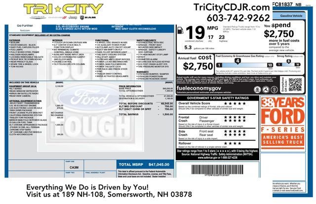 Powered by a robust 3.5L V6 EcoBoost engine and equipped with a 4-wheel drive system, this F-150 delivers impressive performance and capability. The 6-speed automatic transmission ensures smooth and efficient power delivery, while the 3.55 axle ratio provides the perfect balance of acceleration and towing prowess.