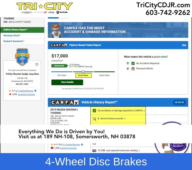 Whether you're commuting to the office or embarking on a weekend getaway, this 2015 Mazda Mazda6 i Touring is the perfect companion. Its exceptional combination of style, technology, and performance make it a standout in the midsize sedan segment. We invite you to experience the joy of driving this exceptional Mazda6 for yourself. Schedule a test drive today and discover the difference that quality craftsmanship and attention to detail can make.
