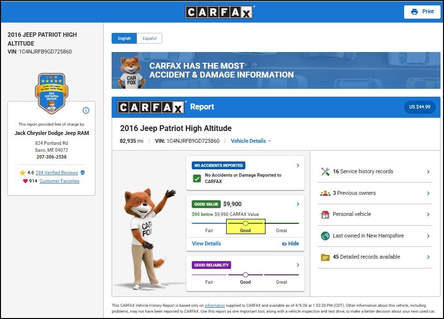 This 2016 Jeep Patriot High Altitude is a true standout in its class, blending rugged capability, premium amenities, and a sophisticated design. Experience the difference for yourself and schedule a test drive today. We're confident this Patriot will exceed your expectations and become the perfect addition to your lifestyle.