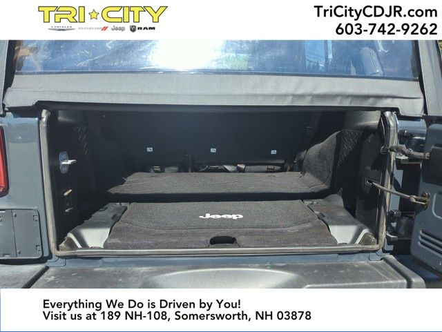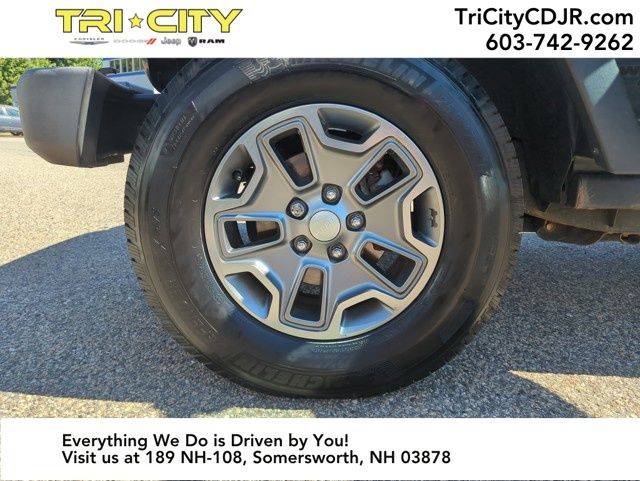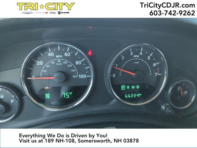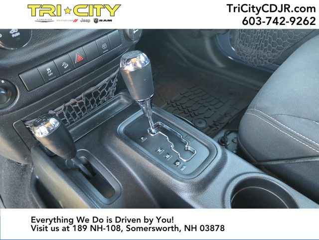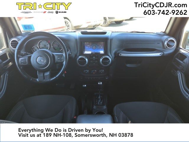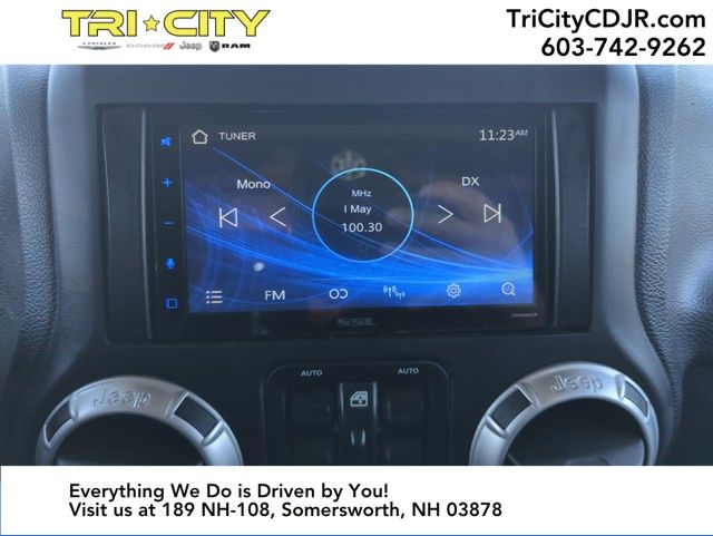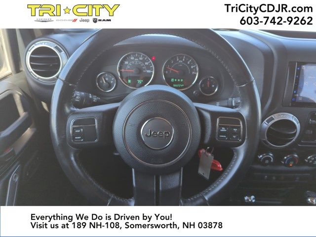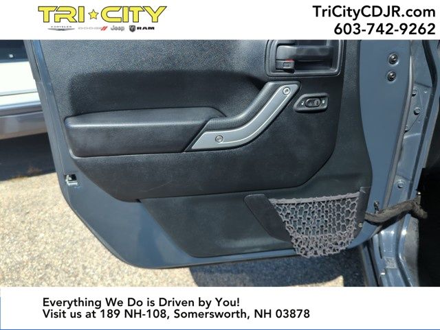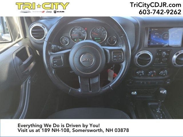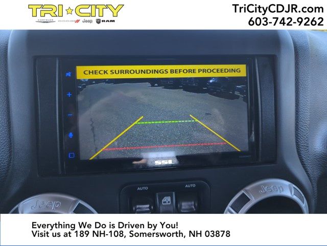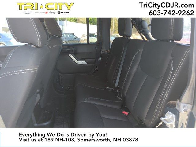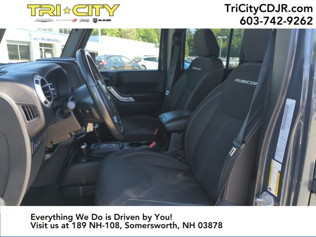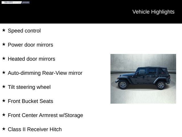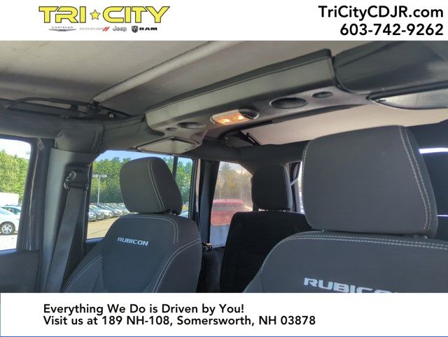 The interior of this Wrangler Unlimited Rubicon is designed with your comfort in mind. Sink into the front bucket seats and take advantage of the power windows, steering wheel-mounted audio controls, and the auto-dimming rear-view mirror. The front center armrest with storage provides a convenient place to store your essentials, and the 17-inch polished mineral gray wheels add a touch of style to this rugged SUV.