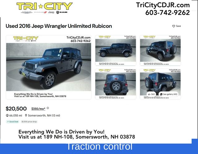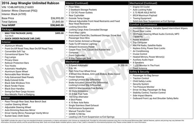 Whether you're embarking on a thrilling off-road adventure or simply navigating your daily commute, this 2016 Jeep Wrangler Unlimited Rubicon is the perfect vehicle to get you there. Experience the unparalleled capability and versatility that only a Jeep can provide. Visit our showroom today and let us help you discover the true meaning of freedom on the open road.