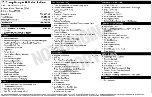 Used 2016 Jeep Wrangler Unlimited Rubicon
