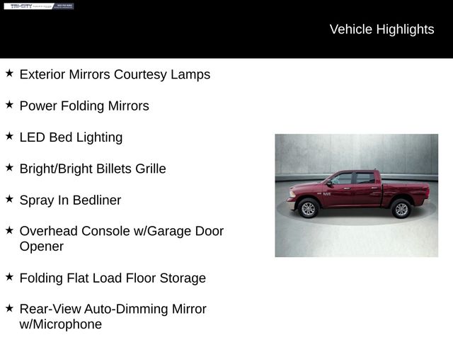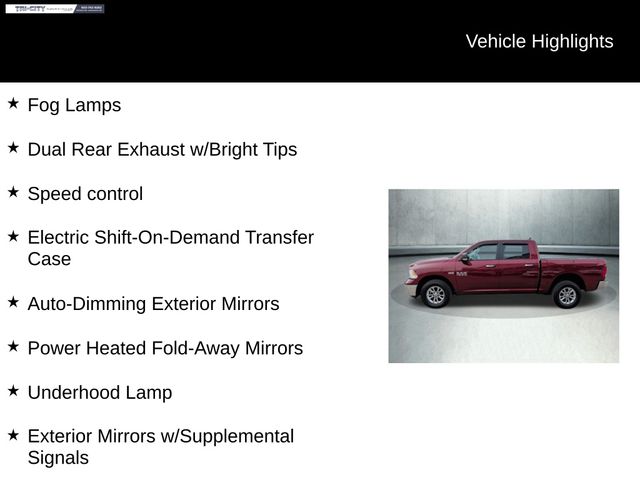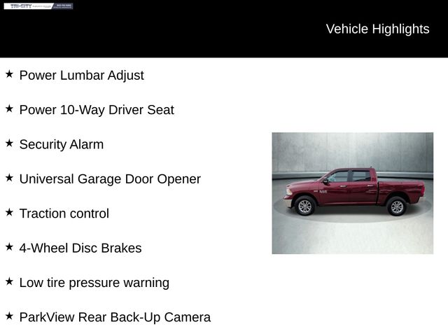 With its impressive fuel economy ratings of 15 MPG in the city and 21 MPG on the highway, this Ram 1500 delivers the perfect balance of power and efficiency. The anti-spin differential rear axle and 4-wheel disc brakes ensure confident handling and control in any driving conditions.