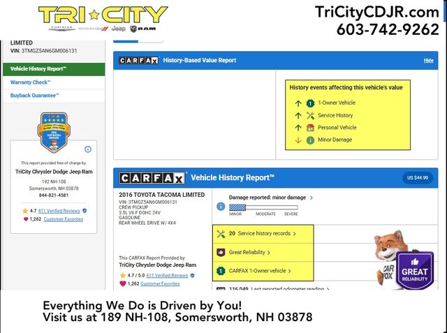 Used 2016 Toyota Tacoma Limited Double Cab