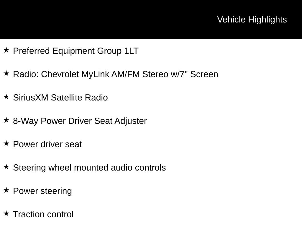 • Radio: Chevrolet MyLink AM/FM Stereo with 7" Screen
