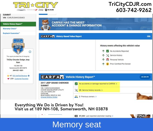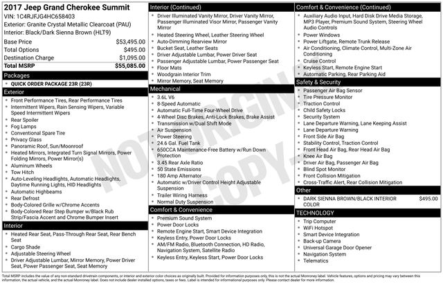 Experience the pinnacle of Jeep luxury and capability in the 2017 Grand Cherokee Summit. This exceptional SUV is ready to elevate your driving experience to new heights. Visit our showroom today and let us demonstrate why the Grand Cherokee Summit is the ultimate choice for the discerning driver.