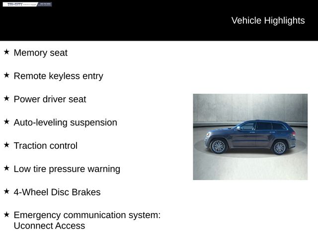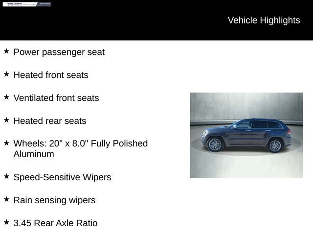 Boasting a stunning array of premium features, the 2017 Grand Cherokee Summit stands out from the crowd. Key highlights include: