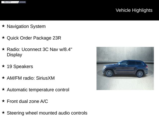 Discover the ultimate expression of refined capability in the 2017 Jeep Grand Cherokee Summit. This exceptional SUV combines uncompromising performance with an unparalleled level of luxury, making it the perfect choice for the discerning driver.