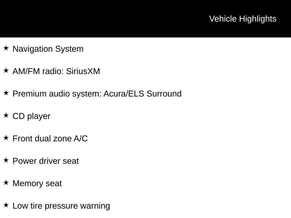 Enhancing the TLX's safety and convenience are a host of advanced technologies, including the Lane Departure Warning System, which helps you stay centered in your lane, and the rearview camera, which provides a clear view behind the vehicle when reversing.