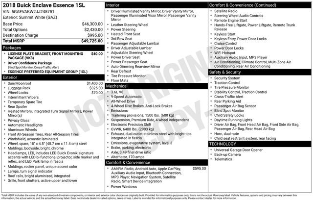 Discover the perfect balance of style, capability, and technology in the 2018 Buick Enclave Essence. Experience the difference for yourself by scheduling a test drive at our showroom today. We're confident you'll be impressed by the exceptional value and refined driving experience this Enclave has to offer.