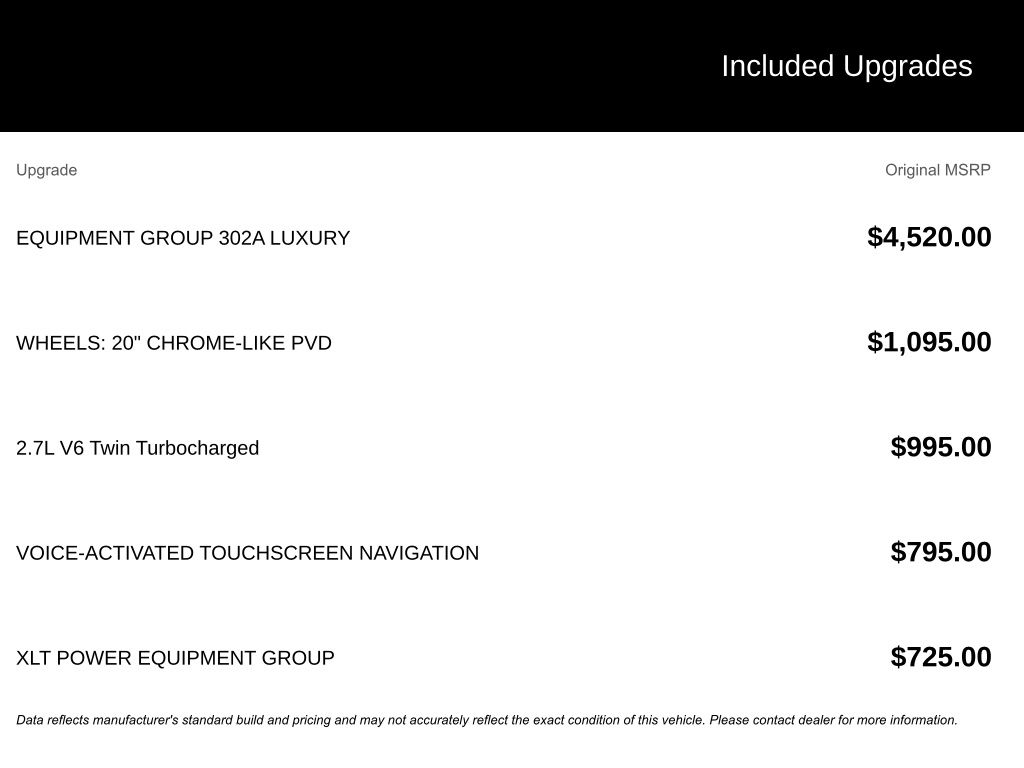 - Equipment Group 302A Luxury $4520.00 Added Customer Value!