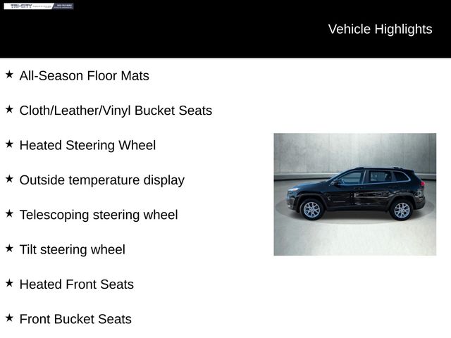 The Latitude Plus trim level takes the Cherokee's renowned capability to the next level, with features like the Cold Weather Group that keep you comfortable in any climate. Heated seats and a heated steering wheel ensure you'll stay cozy, while the remote start system allows you to warm up the vehicle before you even step inside.