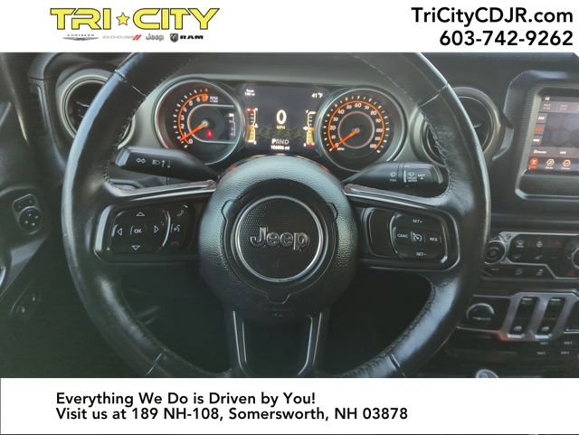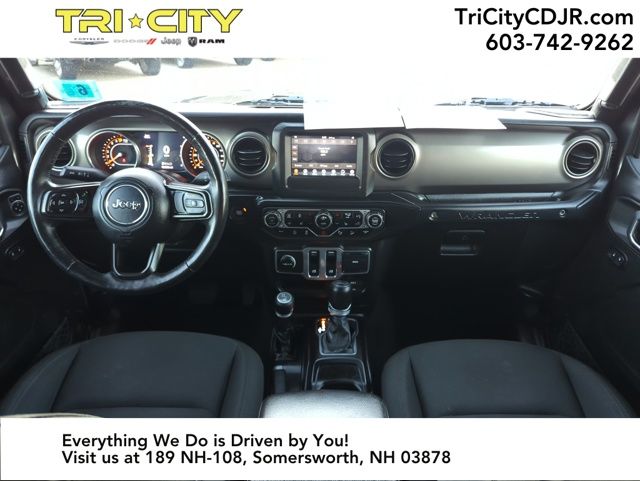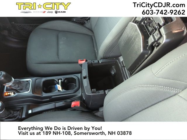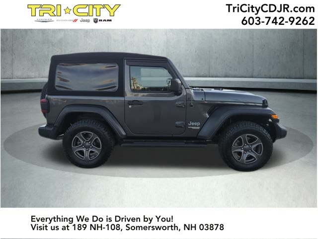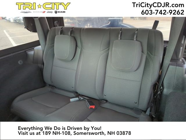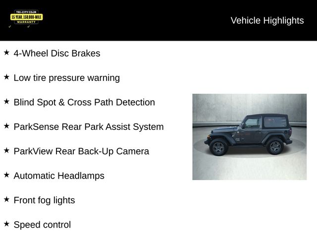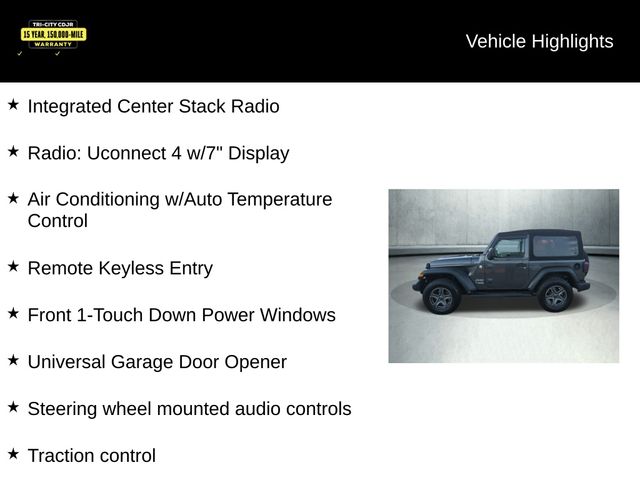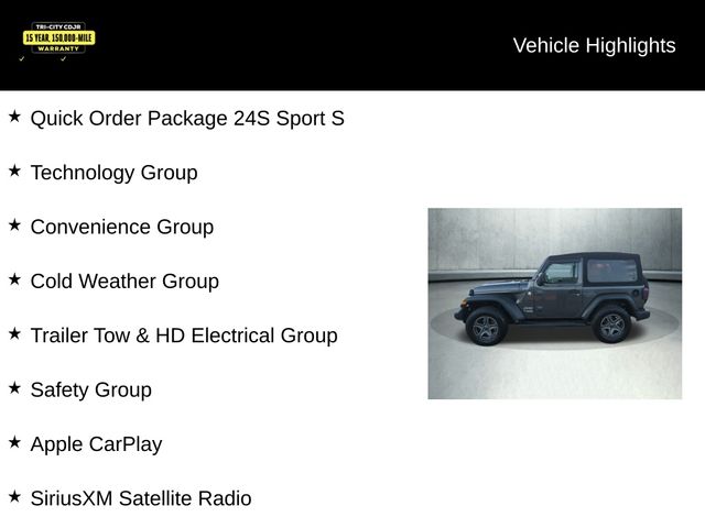This Wrangler Sport S also offers a premium black sunrider soft top, MOPAR black tube steps, and 17-inch polished granite crystal wheels wrapped in all-terrain tires. Inside, you'll enjoy the comfort of cloth low-back bucket seats, a leather-wrapped steering wheel, and dual-zone automatic climate control.