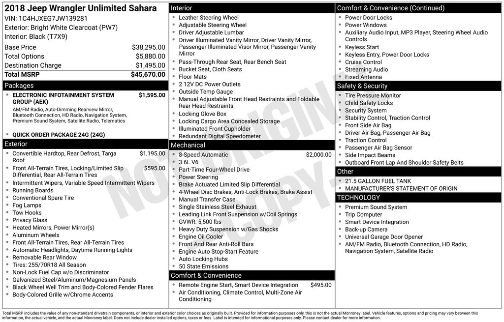 Safety is also a top priority, with features like Blind Spot Monitoring, Rear Cross-Path Detection, and ParkView Rear Back-Up Camera providing added peace of mind. Whether you're tackling the daily commute or exploring the great outdoors, the 2018 Jeep Wrangler Unlimited Sahara is the perfect companion.