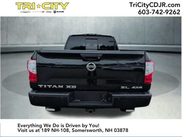 Discover the power and capability of the 2018 Nissan Titan XD SL. This impressive truck is ready to take on any challenge with its robust 5.6L V8 engine, 4-wheel drive, and exceptional towing and hauling capacity. Boasting a sleek black exterior and a wealth of premium features, the Titan XD SL is the ultimate combination of style and substance.