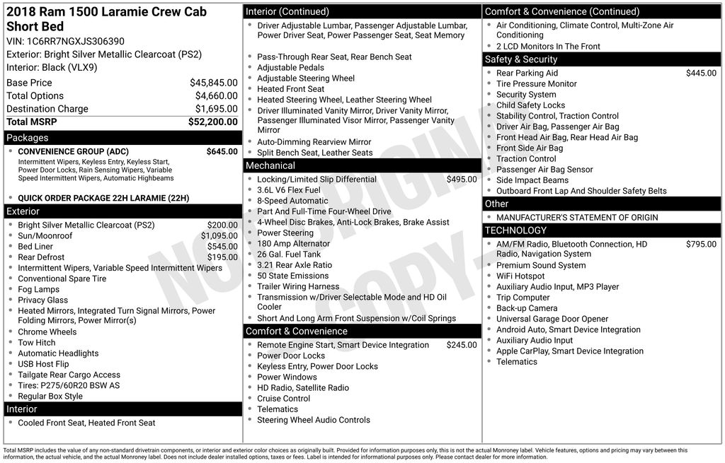This 2018 Ram 1500 Laramie is a true standout in the full-size truck segment, blending exceptional capability, premium refinement, and cutting-edge technology. Experience the difference for yourself and schedule a test drive today. We're confident this truck will exceed your expectations and become an indispensable part of your daily driving routine.