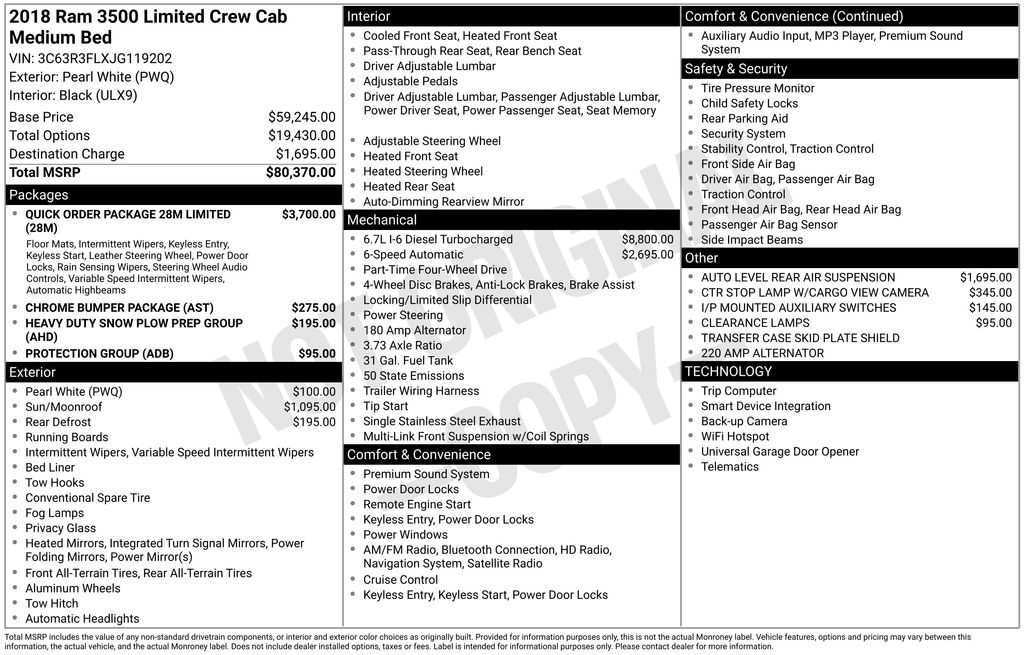 With its impressive towing and hauling capabilities, the 2018 Ram 3500 Limited is the perfect choice for those who demand the best in power, comfort, and technology. Don't miss your chance to experience this exceptional vehicle for yourself. Contact us today to schedule a test drive and let us show you why this Ram 3500 is the ultimate heavy-duty truck.