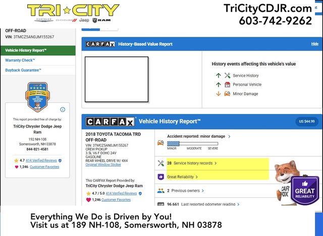 Discover the perfect blend of capability, technology, and comfort in the 2018 Toyota Tacoma TRD Off-Road V6. Experience the thrill of off-road adventures and the convenience of everyday driving. Visit our showroom today and let us help you find your perfect match.